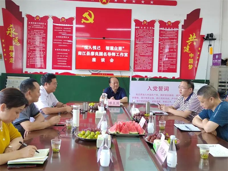 为让团队成员相互了解、认同、接纳,增进团队的协作力和凝聚力,健康、和谐、高效推动工作室工作,2022年7月25日,廖良国名导师工作室在南江县第二中学举行了“悦人悦己 智慧众筹”活动,名导师工作室全体成员参加此次活动。 首先,名导师工作室领衔人廖良国宣读了南江县教育科技和体育局(2022)48号文件公布的工作室成员名单,简明扼要地道明本次活动的目的与意义。 接着,成员进行自我介绍。
